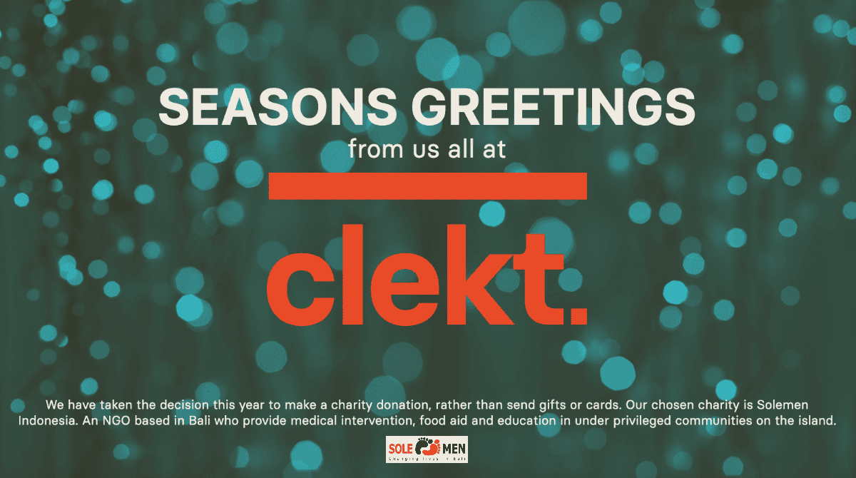 I would like to wish everyone a Happy Christmas and New Year on behalf of the Clekt team, in particular I’d like to thank our Customers and Partners for their support. You know who you are, and if you haven’t cashed in your Christmas drink with me yet don’t worry, we can roll them over into 2023!